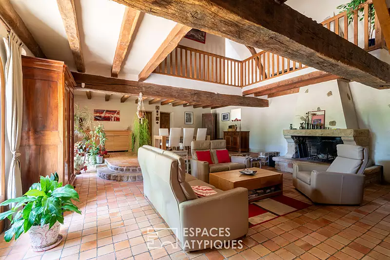 A seulement 35 minutes de Laval, au coeur de la campagne paisible de La Roche-Neuville, cette authentique maison en pierre développe une surface habitable de 191 m², installée sur un vaste terrain arboré de plus de 2 hectares. Véritable havre de sérénité, la propriété séduit par son environnement verdoyant, son étang bordé d'arbres avec une petite île, son double garage avec atelier, sa cave naturelle et ses espaces de vie spacieux baignés de lumière. Derrière sa façade en pierre au charme intemporel, la maison s'ouvre sur un intérieur chaleureux et convivial. Depuis l'entrée, les volumes se dévoilent dans une pièce de vie magistrale réunissant le salon avec cheminée et la salle à manger, sublimée par une belle hauteur sous plafond et des poutres apparentes. La cuisine dinatoire indépendante, aménagée et équipée, s'accompagne d'une arrière-cuisine pratique. Deux chambres en rez-de-chaussée ainsi qu'une salle d'eau complètent ce niveau. A l'étage, trois chambres supplémentaires, une seconde salle d'eau et une mezzanine offrent des espaces de repos confortables et lumineux, sous une magnifique charpente apparente qui confère une atmosphère singulière à l'ensemble. A l'extérieur, la propriété invite à la contemplation. Le jardin arboré s'étend jusqu'à une prairie et un étang privé, formant un cadre naturel exceptionnel pour se ressourcer au quotidien. Une terrasse permet de profiter pleinement des belles journées ensoleillées. Le calme absolu règne ici, tout en restant à proximité des commodités de Château-Gontier ou de Laval. CLASSE ÉNERGIE : B CLASSE CLIMAT : A Montant moyen estimé des dépenses annuelles d'énergie pour un usage standard, établi à partir des prix de l'énergie de l'année 2021, 2022, 2023 (abonnements compris) : entre 1360 euros et 1890 euros (Diagnostics réalisés après Juillet 2021) Les informations sur les risques auxquels ce bien est exposé sont disponibles sur le site Géorisques : www.georisques.gouv.fr Pour plus d'informations et photos Contact : Bastien DELESTREE - 06 09 68 16 23 Agent Commercial EI - RSAC 984 714 139 RENNES Bastien DELESTREE (EI) Agent Commercial - Numéro RSAC : 984 714 139 - Rennes.