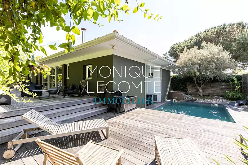 BORDEAUX-CAUDERAN, l'agence Monique Lecomte Immobilier vous propose à la vente cette superbe maison contemporaine avec piscine, rénovée en 2021, d'environ 192 m2 habitables située à proximité immédiate du Golf Bordelais. Elle se compose d'une entrée donnant sur une magnifique pièce de vie baignée de lumière avec cheminée et cuisine semi ouverte entièrement équipée ouvrant sur une terrasse, d'une chambre avec salle d'eau et d'un bureau. En rez-de-jardin se trouvent une très belle suite parentale avec salle d'eau et dressing, deux chambres, une salle d'eau ainsi qu'une lingerie, le tout donnant sur un patio. Un garage et une cave complètent utilement cette villa pleine de charme à la décoration soignée. Un havre de paix dans un écrin de verdure. Rare. (4.00 % honoraires TTC à la charge de l'acquéreur.)