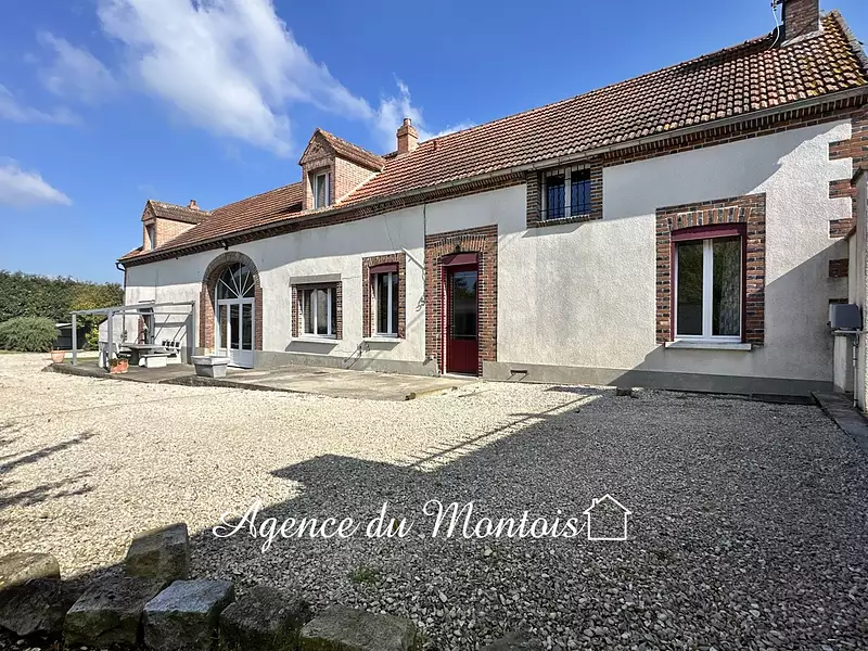 77 - Région BRAY SUR SEINE, à 5 mn de toutes les commodités, dans village calme aux alentours champêtres, sur 2198 m2 de cour et jardin d'agrément clos, belle MAISON BRIARDE rénovée avec des matériaux de qualité, intérieur spacieux et lumineux :