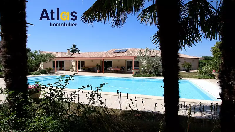 Réf. 2542 - Sur la commune de FORS, votre agence ATLAS IMMOBILIER vous propose cette belle maison de plain-pied de 192 m² habitables sur son terrain entièrement clos et magnifiquement arboré de 4 000 m² avec piscine. La maison est composée d'une vaste entrée et dégagement avec placards, un grand salon- séjour avec cheminée-insert, très lumineux avec accès direct sur la terrasse et vue sur la piscine, une grande cuisine aménagée et équipée avec son espace repas, une arrière cuisine, un bureau ou chambre avec placards, une chambre parentale avec sa salle de bain privative et WC, 2 autres chambres, une salle d'eau indépendante, des WC avec lave-mains, un double garage avec 2 portes motorisées et grenier, une cave climatisée. En extérieur, cette propriété dispose d'un joli parc arboré, d'une très grande terrasse avec pergola bioclimatique, d'une piscine enterrée 12 x 6 sécurisée avec son pool house, d'un jardin potager, d'un grand cabanon idéal pour y ranger votre matériel de jardin ou y faire votre atelier et d'une mare. Le terrain est entièrement clos avec portail électrique. Côté confort, la maison est équipée d'un plancher chauffant avec pompe à chaleur air / eau, d'un chauffe-eau solaire, d'un adoucisseur d'eau, les fenêtres sont en PVC double vitrage et les volets roulants électriques. Situation et environnement : Cette propriété est située dans un environnement calme sans vis-à-vis, à 7 mn des écoles maternelle - primaire et des commerces de proximité, à 12 mn de la gare SNCF de Niort (TGV - TER). Envie d'espace et de tranquillité ! Venez la découvrir, elle va vous séduire. Pour visiter et vous accompagner dans votre projet, contactez Corinne STIEVENARD ou Annabelle GUILLOT, agissant sous le statut d'agent commercial auprès de l'agence ATLAS IMMOBILIER ? T.05.49.77.53.11, immatriculé au RSAC de NIORT sous le n° 899.878.730.