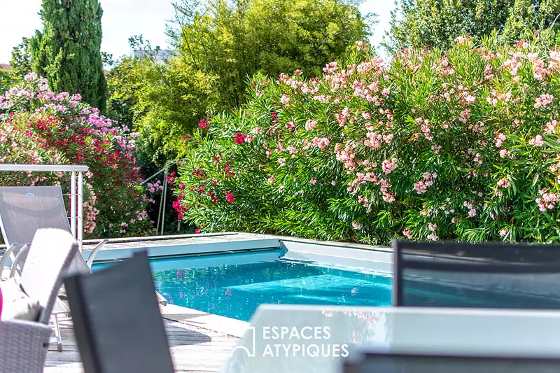 Située dans le très recherché quartier du Pentagone à La Roche-sur-Yon, cette demeure bourgeoise d'exception développe 192 m² habitables sur une parcelle généreuse de près de 1 000 m². Ce bien rare se distingue par une extension contemporaine audacieuse, pensée comme une coque de bateau retournée, coiffée de zinc et largement ouverte sur le parc paysager. Une architecture singulière qui vient sublimer l'âme classique de la maison, créant un subtil dialogue entre tradition et modernité. Dès l'entrée, le ton est donné : parquets d'époque, moulures, cheminées d'ornement? Le charme opère instantanément. De part et d'autre du hall, un vaste bureau lumineux et une chambre aux volumes généreux laissent entrevoir les promesses du lieu. Le couloir mène à la pièce de vie, où la magie opère : baignée de lumière, elle s'étend sur deux niveaux, offrant une perspective saisissante avec la salle à manger qui surplombe le salon. Le tout encadré par une immense baie vitrée, miroir de la piscine dont le reflet danse au plafond. Une cuisine indépendante avec arrière-cuisine complète ce niveau. A l'étage, une suite avec salle de douche privative, une chambre supplémentaire et une salle de bain forment un espace nuit élégant et confortable. Le dernier étage accueille deux autres chambres, une salle de jeux et un grenier aménageable. Un sous-sol et une cave viennent parfaire l'ensemble. Côté jardin, le spectacle continue : grande terrasse bien exposée, piscine sans vis-à-vis, et un parc paysager foisonnant où trône une ancienne verrière en quête de renaissance. Un bien confidentiel et poétique, pensé pour ceux qui recherchent le beau, l'exception et l'âme au coeur d'une ville dynamique. A deux pas des commerces, des établissements scolaires et des halles du centre-ville, elle conjugue vie citadine et art de vivre à l'abri des regards. CLASSE ÉNERGIE : D - CLASSE CLIMAT : D Montant estimé des dépenses annuelles d'énergie pour un usage standard entre 3280 euros et 4510 euros Prix moyens des énergies indexés sur les années 2021, 2022 et 2023 (abonnements compris) Contact (EI) : Nathalie Fayat 07 86 61 96 35 Agent commercial immatriculé au RSAC de LA ROCHE-SUR-YON sous le numéro 2020AC00187. Les honoraires sont à la charge vendeur. Les informations sur les risques auxquels ce bien est exposé sont disponibles sur le site Géorisques : www.georisques.gouv.fr Nathalie FAYAT (EI) Agent Commercial - Numéro RSAC : 887 946 424 - LA ROCHE SUR YON.