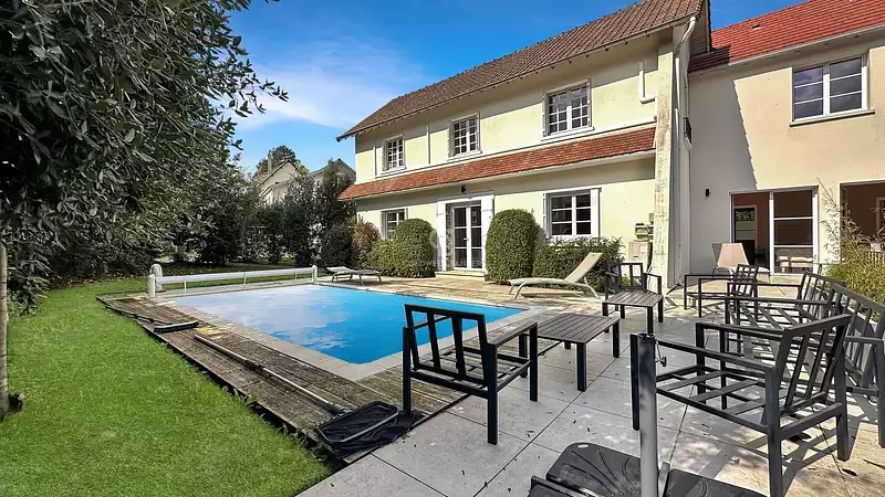 Magnifique maison de 7 pièces, rénovée avec goût, offrant de beaux volumes et une piscine. Jardin arboré de 1023m².