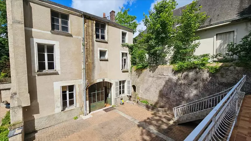 A VENDRE à VENDOME 41100 - CENTRE VILLE - ENSEMBLE IMMOBILIER sur 775m²1°) Maison 109m² comprenant :- Au rez-de-chaussée de plain-pied : Grand porche à usage de hall d'entrée desservant,d'un côté : Chaufferie, bureau et wc avec lave-mains.d'un l'autre : Entrée avec escalier d'accès à l'étage, salle à manger avec cheminée et cuisine.- Au 1er étage : Palier desservant quatre chambres dont une anciennement à usage de salon avec cheminée, salle de bain, wc.- Au 2ème étage : Palier desservant deux pièces, et grenier.2°) Maison 83m² sur cour intérieure comprenant :- En rez-de-jardin : Double garage 34m², cellier, chaufferie, cave et caves dans le roc.- Au dessus accessible par escalier extérieur un logement comprenant : * Au premier niveau : Entrée sur salle de séjour ouvrant sur balcon-terrasse, cuisine ouverte aménagée, salle d'eau, wc* Au second niveau : Deux chambres.Cour intérieure, terrain.Logement à consommation énergétique excessiveLes informations sur les risques auxquels ce bien est exposé sont disponibles sur le site Géorisques : www. georisques. gouv. frConsultez nos tarifs :