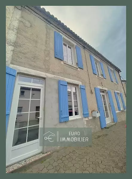 Dans un village avec commodités ( pharmacie,épicerie,poste ,garage, médecins ect ....) grande maison en pierre de 193 m2 habitables ,4 chambres et un bureau ,1 salon,1 cuisine , 2 salles d'eau, 2wc,1 lingerie,1 grenier .Avec un jardin de 471 m2 clos proche du ciron .