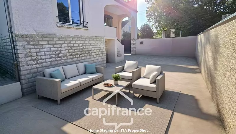 A l'extérieur, vous profiterez d'une belle terrasse ensoleillée cachée par ses grands murs de clôture pour plus de sérénité.