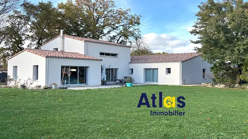 Réf. 2589 - En exclusivité dans votre agence, venez découvrir cette magnifique maison récente de 193 m² environ nichée au coeur de son écrin de verdure de 1 630 m². Au rez-de-chaussée vous trouverez une entrée avec placard, un grand espace de vie comprenant une vaste cuisine avec son séjour très lumineux avec un accès direct sur la terrasse, un salon avec son poêle à bois. Vous découvrirez également un cellier avec un accès au double garage. L'espace nuit est composé d'un dégagement menant vers trois belles chambres avec placard, une salle de bains avec douche italienne et baignoire d'angle, des WC séparés, une suite parentale avec son dressing et sa salle d'eau. A l'étage, une grande mezzanine lumineuse et son espace bureau. Ses atouts: maison récente, synonyme d'isolation et de performances énergétiques optimales, chauffage par pompe à chaleur air/eau, Coup de coeur assuré pour cette maison familiale ! Contactez nous dès maintenant pour ne pas laisser passer cette exclusivité ! ATLAS IMMOBILIER - E.I Annabelle GUILLOT - , agissant sous le statut d'agent commercial auprès de l'agence ATLAS IMMOBILIER T.05.49.77.53.11, immatriculé au RSAC de NIORT sous le n° 899.878.730. Annabelle GUILLOT (EI) Agent Commercial - Numéro RSAC : 899878730 - NIORT.