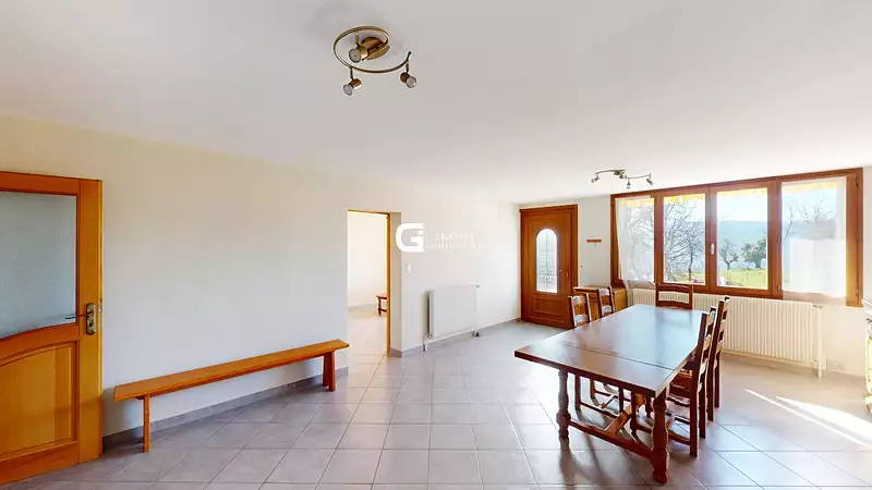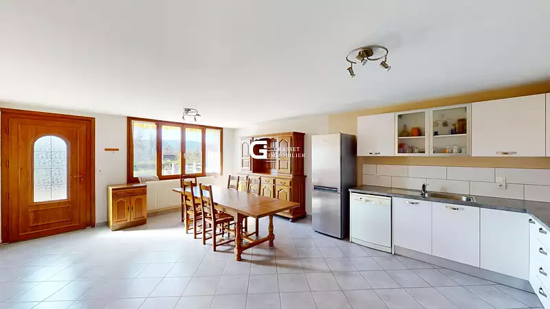 Idéalement située dans le charmant village de Plagne, au coeur de l'Ain, cette maison bénéficie d'un environnement calme, tout en étant à seulement 15 minutes de Valserhône et 1 heure de Genève. Accès rapide à l'autoroute A40, parfait pour les frontaliers ou les amoureux de la nature . Cette maison de village rénovée de 193 m2 habitables se compose au rez-de-chaussée d' 1 pièce à vivre avec cuisine équipée, 1 salon, 1 salle d'eau, atelier, chaufferie et à l'étage, on retrouve 3 chambres avec un accès terrasse et 1 salle d'eau. Au dernier étage un grenier aménageable, offrant un beau potentiel supplémentaire Cette maison dispose aussi d'un appartement indépendant de type 2 comprenant une cuisine équipée en rez-de-chaussée avec un accès terrain, et à l'étage un salon, une chambre et une salle d'eau , idéal pour de la location. Le tout sur un terrain de 687 m2 avec un abri de jardin. Deux unités d'habitation séparées possibles, parfait pour un projet familial ou un investissement locatif. Une maison prête à vivre, à découvrir sans tarder ! Pour plus d'informations ou organiser une visite, contactez-nous dès aujourd'hui.Afficher plus