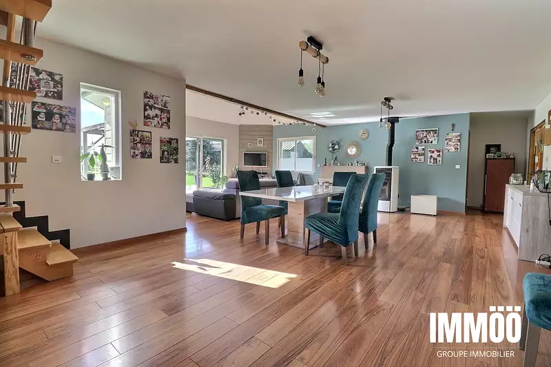IMMÖÖ vous propose en exclusivité cette belle maison à ossature bois et bardage en clin construite en 2006, offrant de généreux volumes et la possibilité de vivre de plain-pied.