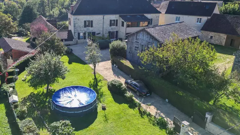 SECTEUR GOURDON - Au sein d'un hameau, disposant d'un agréable jardin clos, ce bel Enclos de caractère bien entretenu intégre un habitat principal avec maison d'amis attenante - 194 m² d'espaces à vivre lumineux et fonctionnels, permettant d'envisager une activité d'accueil ou tout projet de regroupement familial. A quelques mns de tous commerces.