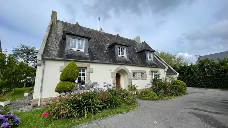 C'est à proximité immédiate du centre de PONT L'ABBÉ que nous vous proposons cette grande maison traditionnelle en excellent état général qui offre une grande pièce de vie, cuisine aménagée, 4 chambres dont 1 en RdC, 2 salle de bains, une lingerie, un bureau, un garage, une cave et un grenier. Terrain de 878 m2. (4.41 % honoraires TTC à la charge de l'acquéreur.)