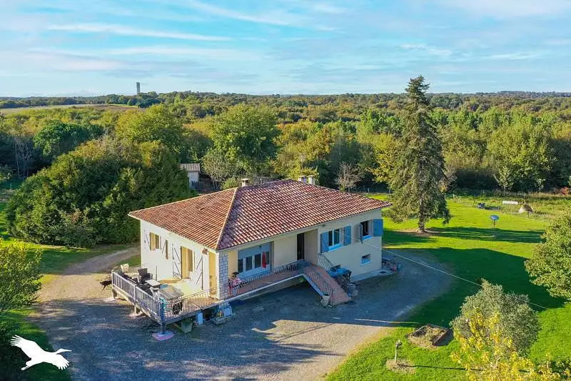 A quelques minutes d'Eauze, une maison avec un salon lumineux, une cuisine séparée et 4 chambres. Un sous-sol avec un garage et un espace bodéga. Un grand terrain plat et entièrement cloturé sur 1 hectare. Proposition d'aménagement virtuel non contractuelle en dernière photo.