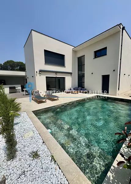 À vendre Coup de coeur Vergèze, villa contemporaine de 2023 avec prestations haut de gamme d'environ 194 m2 sur 455m2 de terrain