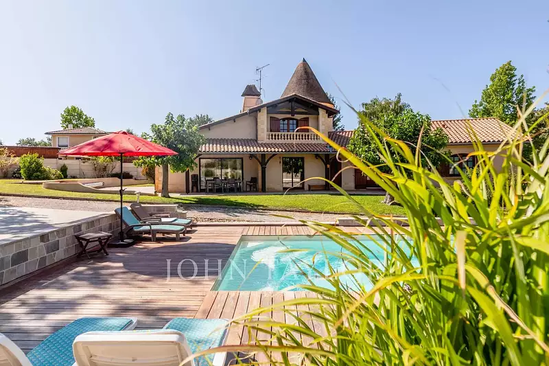 Chaque détail de cette résidence familiale témoigne d'une qualité de construction exceptionnelle, avec des matériaux nobles. En point d'orgue, une tour en pierre de Garonne ajoute une touche irrésistible à l'architecture globale.