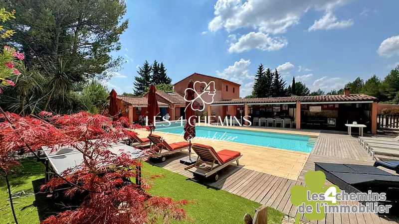 A 10 Km d’Aix-En-Provence à Chateauneuf-Le-Rouge,, cette magnifique maison de 7 pièces d'une superficie généreuse de 200 m2, elle offre un cadre de vie idéal pour les familles en quête de confort et de tranquillité et elle est également idéale pour une maison de vacances en Provence au son des cigales, proche de la mer. Dès l'entrée, vous serez séduit par un vaste hall lumineux menant à un spacieux salon, où de grandes fenêtres laissent entrer la lumière naturelle, créant une atmosphère chaleureuse agrémenté par une cheminée pour vos soirées en hiver. La cuisine, entièrement équipée, est un véritable espace de convivialité, parfait pour préparer de bons repas en famille ou entre amis. Le coin nuit comporte 2 chambres en rez-de-chaussée-de-chaussée, une salle de bain et WC séparé. Il se prolonge par une salle de bien être avec sauna et salle de sport. À l'étage, vous découvrirez 2 chambres, chacune avec placard et une salle de bain, WX, et un bureau ou petite chanbre d’enfant. À l'extérieur, un jardin paysager vous attend, avec ses nombreux espaces de détente différents : grande terrasse en partie ombragée au sud avec vue sur sa prairie, une terrasse côté Nord très pratique accessible depuis la cuisine, un immence pool-hiuse entièrement équipée d’une cuisine avec four à pin pour vos repas entre amis à l’ris du soleil au bord de sa grande piscine et sa plage ensoleillée vous pourrez profiter de moments de détente ou organiser une partie de boules sous les pins. Un car-port double voitures et des places de stationnement sont également à votre disposition. Idéalement située, cette maison se trouve à proximité des écoles, des commerces et des transports en commun, facilitant ainsi votre quotidien.- et à seulement 10 minutes du centre ville d’Aix-En-Provence désservit également par des bus toutes les heures. Ne manquez pas cette opportunité rare ! Pour plus d'informations ou pour organiser une visite, n'hésitez pas à nous contacter ! Prix de vente : 849000 Euros, honoraires agence à charge acquéreur de 4%. DPE : C. Les informations sur les risques auxquels ce bien est exposé sont disponibles sur le site Géorisques : www. georisques. . Mandat de vente no2761 Retrouvez tous nos biens sur :