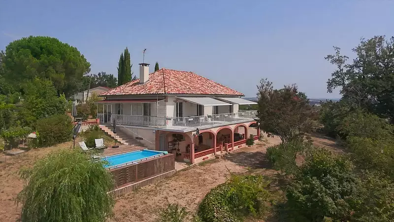 Perchée sur les hauteurs, cette charmante maison des années 1980 offre environ 195 m² habitables, actuellement divisés en deux appartements indépendants.