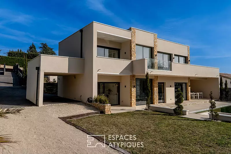 A seulement 21 minutes de la gare TGV de Valence et 23 minutes de l'autoroute A7, cette maison contemporaine construite en 2022 séduit par son architecture moderne et son cadre verdoyant. Pensée dans les moindres détails pour offrir un art de vivre fluide et raffiné, elle conjugue esthétique, confort et fonctionnalité dans une atmosphère paisible, au coeur d'un environnement résidentiel recherché. Dès l'entrée, le ton est donné : la pièce de vie principale, vaste et baignée de lumière, s'ouvre sur le jardin grâce à de larges baies vitrées XXL qui offrent une luminosité traversante du matin au soir. Cet espace de réception aux lignes épurées marie harmonieusement un salon convivial, un coin repas élégant et une cuisine haut de gamme, entièrement équipée et aménagée avec goût. A l'arrière, un cellier et une buanderie facilitent le quotidien tout en donnant accès au garage fermé. Le rez-de-chaussée abrite également une suite parentale confortable, dotée d'une salle d'eau privative et d'un espace nuit intimiste, véritable refuge pour les maîtres des lieux. Un bureau indépendant, calme et lumineux, complète ce niveau : idéal pour le télétravail ou un espace créatif. L'étage, accessible par un escalier en bois au design soigné, accueille une seconde suite parentale avec salle d'eau attenante, parfaite pour recevoir ou pour un adolescent en quête d'indépendance. Deux autres chambres spacieuses et lumineuses, ainsi qu'une grande salle de bains familiale, prolongent cet espace nuit. Chaque chambre bénéficie d'un accès direct à une vaste terrasse panoramique, offrant une vue dégagée sur la verdure et un coin détente idéal pour les beaux jours. A l'extérieur, le jardin paysager entièrement clos dévoile un véritable havre de paix. Une grande terrasse aménagée invite aux repas d'été, tandis qu'une piscine moderne vient parfaire l'ensemble pour des moments de détente absolue. Et pour prolonger les instants de convivialité, un terrain de pétanque a été judicieusement intégré à l'aménagement. Un abri voiture complète les prestations de cette propriété élégante et fonctionnelle. Construite avec un souci constant de qualité et d'esthétique, cette maison séduit par ses matériaux nobles, ses finitions soignées et sa distribution fluide des espaces. Chaque détail a été pensé pour offrir une vie quotidienne harmonieuse et confortable, dans un cadre calme, verdoyant et parfaitement connecté. Une adresse rare, à la fois moderne et apaisante, pour ceux qui rêvent de conjuguer qualité de vie et accessibilité sans compromis. Sandrine MATHIEU 06 66 22 74 59 Sandrine MATHIEU (EI) Agent Commercial - Numéro RSAC : 838 835 486 - Romans sur Isère.