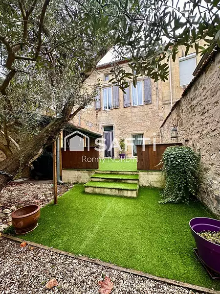 Coté jardin vous pourrez vous détendre au sein de la cour aménagée avec son bel Olivier, enfin une cave voûtée d'environ 15 m2, complète l'espace extérieur.