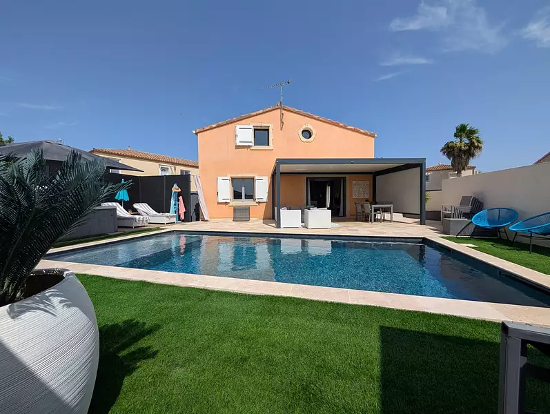 A Servian, village agréable, parfaitement situé entre Pézenas, Agde et Béziers, à proximité des deux autoroutes (A9 et A75), découvrez cette villa d'architecte de 195m².