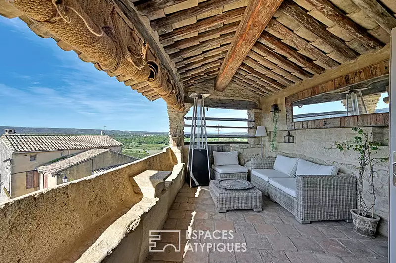 A 15 kilomètres d'Uzès, au coeur d'un village médiéval animé, cette maison de 195m² bâtie sur des fondations du XIIIe, déploie son élégance intemporelle. Entièrement rénovée, elle marie la noblesse des vieilles pierres à la douceur d'un confort contemporain. Derrière sa porte ancienne, l'entrée s'ouvre sur un salon d'été généreux, baigné de lumière, où un jacuzzi invite à la détente. De là, un escalier à vis, témoin d'un passé séculaire, conduit aux étages supérieurs. Le premier étage se dévoile comme un écrin intime, porté par une suite de près de 40m²c aux volumes amples, prolongée d'un balcon ouvrant sur la place du village et son église. Deux salles d'eau, un vaste dressing modulable et une seconde chambre avec salle d'eau composent cet univers feutré, où l'âme des pierres dialogue avec l'intimité des regards. Plus haut, la maison s'ouvre sur la lumière. Un vaste espace de réception, ponctué d'une cuisine équipée, s'élance sous de beaux volumes. De chaque fenêtre, les panoramas se dessinent : les Cévennes au loin, le Pont du Gard, les toits du vieux village et la campagne environnante. A ce même niveau, une troisième chambre se love sous la hauteur, accompagnée de sa salle de bains, tandis qu'un bureau en mezzanine vient se poser comme une alcôve suspendue. Depuis le salon, un escalier de bois et de fer forgé mène à l'apogée : une terrasse panoramique comme suspendue. Ici, le regard embrasse un paysage à plus de deux cents degrés, des Alpilles aux Cévennes, jusqu'aux gorges du Gardon. L'espace couvert, aménagé en cuisine d'été, prolonge les instants de convivialité et de contemplation, comme suspendus hors du temps. Un studio indépendant, pensé comme une maison miniature, complète cet ensemble. Ses 31 m² se déploient en salon, cuisine équipée, salle de bains et chambre en étage, offrant à famille et amis une parfaite indépendance. Enfin, une place de stationnement privative, un monte charge et un cellier parachèvent cette adresse rare. Cette maison se vit comme une rencontre entre mémoire et modernité, patrimoine et poésie. Une demeure où chaque escalier est une découverte, où chaque fenêtre ouvre sur un horizon nouveau, et où l'art de vivre s'écrit au présent comme au passé. Contact : Virginie 06 77 39 33 14 CLASSE ENERGIE : D / CLASSE CLIMAT : B Virginie Crouzier (EI) Agent Commercial - Numéro RSAC : 921 225 736 - Nîmes.