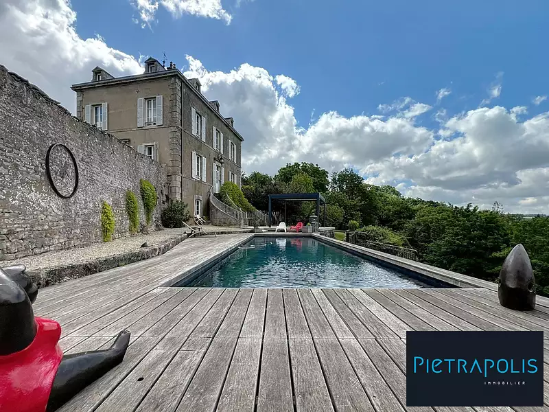Vous profiterez d'un accès sur un grand jardin de plus de 1 800 m2 arboré entièrement clos avec vue imprenable, d'une terrasse avec pergola bioclimatique et d'une grande piscine chauffée.