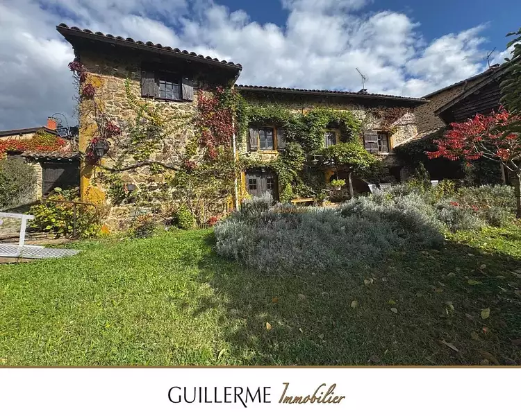 Votre Agence vous propose à la vente cette charmante maison ancienne de 148 m2 Carrez située en plein centre du village de Ternand au calme. Terrain de 500 m2 avec 3 places de parking