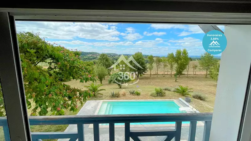 On peut profiter du terrain de 8500m2 clos et arboré, grâce aux multiples terrasses ouvertes ou couvertes et à la piscine de 8m x 4m.