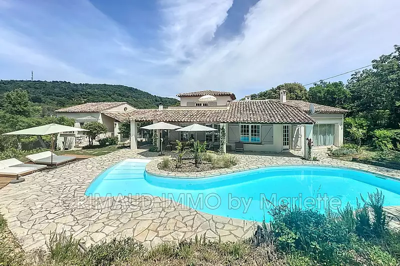 Belle propriété sur 2500m² a pied du village de la Garde Freinet, une belle piscine en forme libre, chauffée, un jacuzzi, un chalet en bois et nombreuses terrasses couvertes et non couvertes, complétement rénovée en 2025 se composant: entrée, wc d'invités, grande salle à manger avec cheminée, sa cuisine ouverte moderne et tout équipée, un salon avec poêle à bois, une chambre avec salle de douches+wc, une chambre de maitre avec salle de douches+wc, une chambre donnant coté piscine, à l'étage une belle chambre avec salle de douches et sa terrasse tropézienne et ses poutres apparentes. Un appartement indépendant avec séjour, cuisine, salle de douches+wc, chambre sur mezzanine. Grand garage avec cave et atelier.
