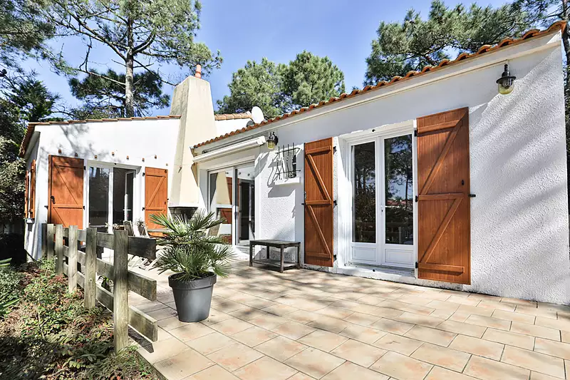 Domaine de la Pironnière, emplacement d'exception, à l'abri des regards et à proximité de la plage et du lac de Tanchet, sur une belle parcelle boisée et bien exposée, villa sur deux niveaux. Travaux d'embellissement ou projet à repenser et valoriser. La parcelle boisée est magnifique. (4.21 % honoraires TTC à la charge de l'acquéreur.)