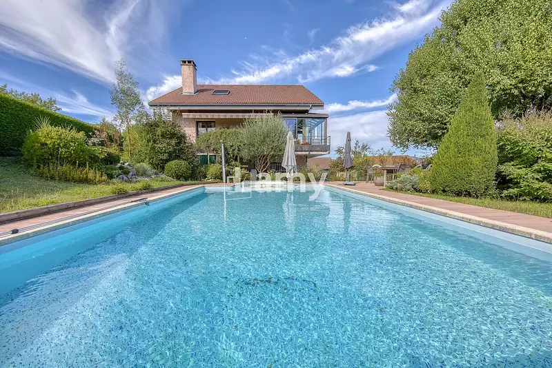Véritable opportunité à découvrir pour cette maison aux volumes généreux : 200 m² habitables et 308 m² en totalité. Elle est située dans un secteur calme et résidentiel sur la commune de Poisy, à dix minutes d'Annecy.Cette maison dispose d'une vue exceptionnelle sur Annecy et ses montagnes environnantes.Elle est implantée sur un terrain de 1000 m²entièrement clos et d'une piscine de 5x10 mètres sécurisée.Au rez de chaussée : deux chambres, une salle de bain avec baignoire et douche, un wc séparé, une cuisine équipée, un salon séjour avec cheminée donnant sur une véranda.A l'étage : une mezzanine, trois chambres, une salle d'eau avec wc, de nombreux rangements.Ce bien comprend également : un garage en sous sol avec porte motorisée, une cave et deux studios de 24 m² chacun avec une entrée indépendante.Les + :- beaux volumes- maison bien entretenue- belle vue , lumineuse et au calme- 5 chambres + 2 studios- piscine- à 5 minutes des écoles ,collège et commerces de Poisy- à 10 minutes d'Annecy- à 10 minutes de l'entrée d'autoroute