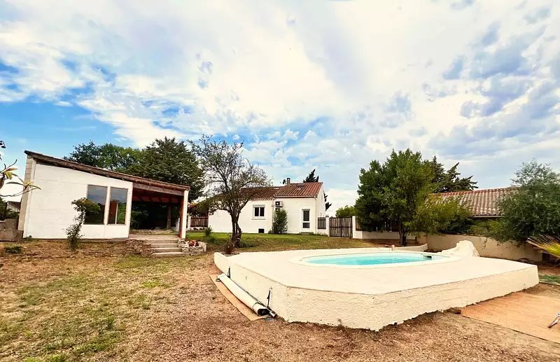Fiche Id-SUP165435 : A 23 km de Narbonne, une Villa rénovée avec piscine, d'une surface habitable d'environ 197 m² sur un terrain clôturé de 1 315 m². Un grand hall d'entrée distribue 3 grandes pièces. La première une belle cuisine ouverte sur salle à manger - salon avec cheminée qui donne vers une véranda de 12 m². la seconde pièce d'environ 50 m² peut être aménagée comme un studio indépendant. La troisième pièce est une chambre d'environ 38 m² avec sa salle de bains. A l'étage, 2 autres chambres ( 35 et 16 m² avec placards) et une salle de bain. Derrière la maison, un abri de voitures/atelier d'environ 40 m². Les plus; clim réversible gainable, poêle à bois, volets électriques , ballon thermodynamique. - Mentions légales : Proposé à la vente à 369000 Euros (honoraires à la charge du vendeur) - Classe-Energie C : 112 kWh.m2.an - Montant estimé des dépenses annuelles d'énergie pour un usage standard compris entre 880 et 1260 Euros - Affaire suivie par Mr Michael BOWDITCH (Agent commercial independant) - Reseau Immo-Diffusion Argeliers - Pour plus d'informations, contactez notre secrétariat au 09 74 53 13 81 (Appel gratuit ou prix d'une communication locale)