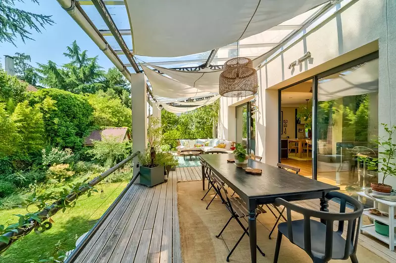 EXCLUSIVITE. Environnement privilégié pour cette maison en excellent état implantée sur un magnifique terrain de 680 m² sans aucune nuisance. Située sur la rive gauche de Sèvres, le quartier est en limite de Meudon Bellevue à quelques minutes de marche des écoles (les Bruyères ou la Source). Construite dans les années 50, baignée de lumière, elle se déploie sur 197m² et offre de chaque pièces des vues sur la verdure. En entrant, vous serez séduit par le séjour prolongé d'un bureau agrémenté d'une cheminée à double face pour en profiter aussi coté salle à manger. La cuisine américaine est ouverte sur une terrasse aménagée de 40 m² exposée Sud, véritable appel à la détente face à la nature. L'étage accueille 5 chambres dont deux avec balcons et une salle de bains équipée d'une douche. De plain pied sur le jardin, le domaine parents possède de beaux volumes avec une chambre de 27m², de nombreux rangements et une salle de bains avec douche. L'ensemble est complété de deux garages/atelier avec portail automatique, buanderie, caves et combles. (3.50 % honoraires TTC à la charge de l'acquéreur.)