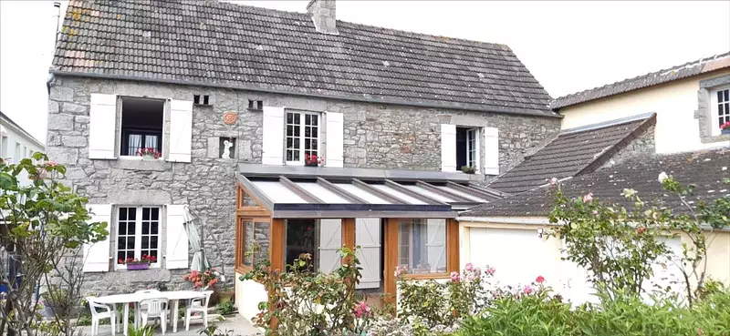 Maison en pierres avec extension à usage d'habitation d'environ 198m² comprenant : Au rez-de-chaussée : Entrée dans véranda, salle à manger salon avec cheminée à foyer ouvert, cuisine aménagée et équipée avec insert et poêle à granulés, WC indépendant avec lave-mains. A l'étage : Palier, dégagement, trois chambres, salle de bains et WC. Grenier au-dessus. Dans extension, cuisine d'été, couloir, buanderie, pièce, salle d'eau et WC, grande pièce carrelée avec accès direct au jardin. Pièce palière, deux chambres. Egalement inclus : Garage double, dépendances diverses, hangars, préau, poulailler, grande cour avec places de parking, portail motorisé, verger, jardin arboré, aménagé et clos.