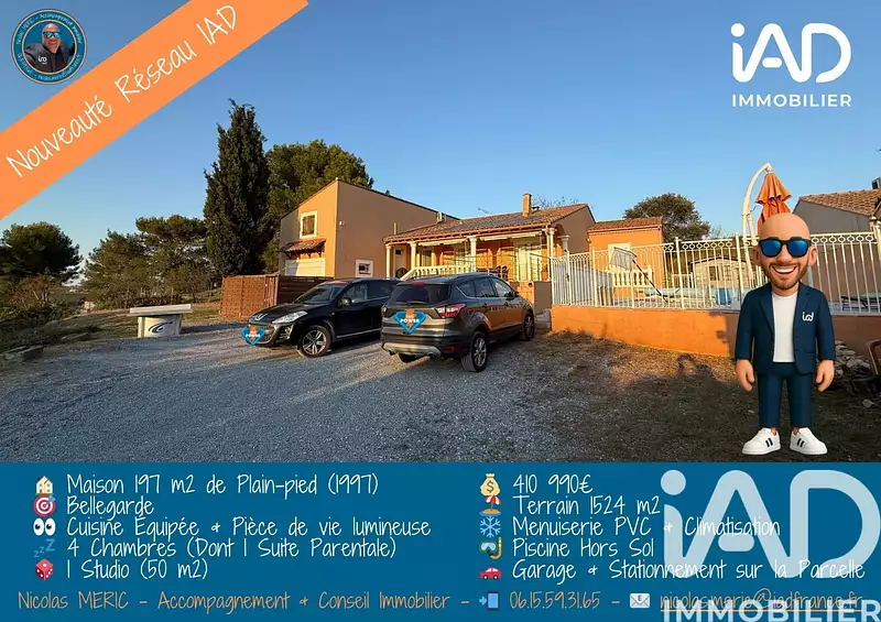 iad France - Nicolas Meric vous propose: BELLEGARDE - Villa 147 m2 (environ) - Studio 50 m2 (environ) - Terrain de 1524 m2 (environ) dans un secteur calme très recherché.