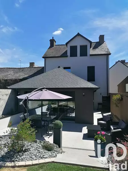 iad France - Emmanuelle Rousseau vous propose: Venez découvrir cette sublime maison de ville de 198m² au coeur de la commune de Montauban-de-Bretagne, isolée de la rue passante, totalement rénovée et pensée par un architecte, elle dispose d'un parking privatif, et d'un garage de 50m2.