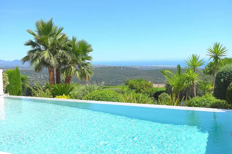 Au sein d'un quartier résidentiel, proche du village, superbe propriété bénéficiant d'une vue panoramique sur la mer et le village de Tourrettes/Loup.