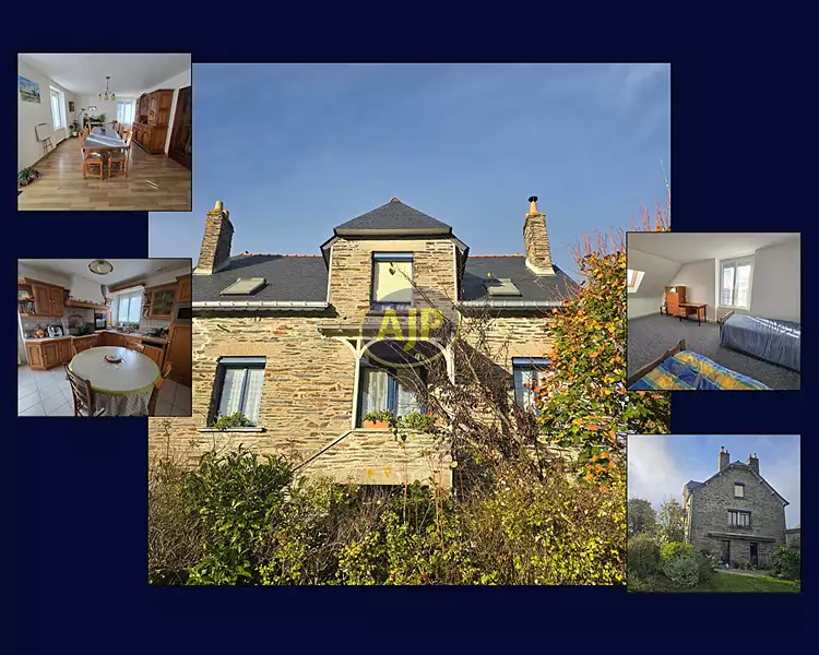 Bourg de GUEMENE-PENFAO ; Maison de charme en pierres apparentes offrant de beaux volumes d'env 199 m² , dotée d'un hall d'entrée avec espace bureau, sd'eau/wc, pièce de vie lumineuse de 37 m² avec poêle à bois donnant sur le jardin, arrière-cuisine / buanderie ; A l'étage une cuisine aménagée et équipée, pièce à vivre en enfilade dotée d'une salle à manger avec cheminée et salon, une salle d'eau, cabinet de toilette et une chambre, Au deuxième étage dégagement, trois belles chambres et combles à usage de grenier. L'ensemble est complété par un extérieur doté d' un garage et atelier. Le tout sur 1580m² de terrain, puits. (tout à l'égout, parcelle de 1380 m² en zone 2AU possibilité de diviser une parcelle constructible en 2028 sous réserve du prochain P.L.U) (4.75 % honoraires TTC à la charge de l'acquéreur.)