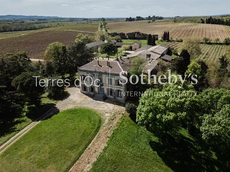 Erigée au cœur d'un parc 2,24 ha, cette demeure de style néoclassique nécessite d'importants travaux de restauration. Bâtie sur 2 niveaux et des combles, elle offre 795m² de volumes généreux. Certains salons sont ornés de tapisseries, les cheminées sont sculptées en magnifique marbre rouge nervuré de Caunes-Minervois, certaines faïences Art Déco ont été préservées.
