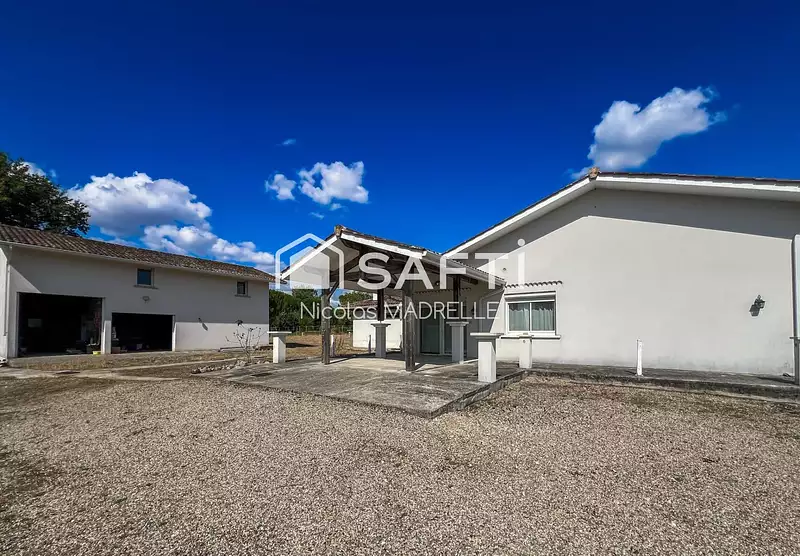 Nicolas MADRELLE – SAFTI vous présente à Ambarès-et-Lagrave (33440), une propriété composée d'une maison principale, d' un vaste garage et de dépendances sur une parcelle de terrain clos et piscinable d'environ 6400 m². À seulement quelques minutes des commodités, écoles, collège et des principaux accès routiers/ferroviaires (A 10/ gares TER de Lagrave et La Gorp), cette propriété combine calme, espace et confort. La maison principale d'une superficie d'environ 200 m2, offre au rez-de-chaussée une entrée généreuse, un séjour lumineux, une cuisine avec cheminée, deux chambres, salle d’eau, WC, bureau et chaufferie. À l’étage, un salon cocooning, deux grandes chambres mansardées, salle de bains et WC complètent l’espace nuit. À l’extérieur : une vaste cuisine d’été sous charpente bois attenante à la maison, un puits foré, un abri voiture, un bureau indépendant de 9 m², ainsi qu’un second bâtiment R+1 comprenant 125 m² de garage et 60 m² supplémentaires à l’étage. Un bien aux multiples possibilités : projet familial, artisan, activité professionnelle ou simplement maison de campagne à seulement 10 km de Bordeaux. Ne manquez pas l'opportunité de découvrir ce cadre unique.