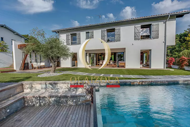 Située au calme absolu, en bout d'impasse, cette superbe maison contemporaine édifiée en 2022 s'insère harmonieusement sur un terrain arboré de 798 m². Conçue pour allier confort, esthétisme et fonctionnalité, elle développe environ 200 m² habitables répartis sur deux niveaux. Dès l'entrée, le ton est donné : volumes généreux, matériaux de qualité et finitions soignées. Le rez-de-chaussée s'articule autour d'un double séjour baigné de lumière, comprenant un espace salle à manger et un coin TV ouvert sur un patio. La cuisine ouverte, entièrement aménagée et équipée, est prolongée d'une arrière-cuisine, d'une buanderie et de rangements. Deux WC complète ce niveau. A l'étage, la suite parentale séduira par ses prestations : dressing sur-mesure, double salle d'eau, double vasque, baignoire. Trois autres chambres avec placards intégrés se partagent deux salles d'eau supplémentaires et des toilettes. La maison est équipée de volets roulants électriques, d'une climatisation réversible, d'un systéme d'alarme, et d'un système d'assainissement tout à l'égout conforme. L'état intérieur et extérieur est irréprochable. Les extérieurs invitent à la détente : piscine élégante avec coin lounge, cuisine d'été, vaste terrasse abritée exposée plein sud, et trois places de stationnement complètent l'ensemble. Cette propriété indépendante bénéficie d'un environnement résidentiel très calme, tout en restant proche des commodités et des écoles. Notre agence vous accueille téléphoniquement du lundi au samedi, de 8h à 19h, afin de répondre à toutes vos questions et de vous accompagner dans vos projets immobiliers. N'hésitez pas à nous contacter pour obtenir des informations personnalisées et un suivi attentif de vos démarches. Référence : OLAVLA1379 VENTE IMMOBILIER ARBONNE HONORAIRES CHARGE VENDEUR Les informations sur les risques auxquels ce bien est exposé sont disponibles sur le site Géorisques : www.georisques.gouv.fr Leonard AZCONA (EI) Agent Commercial - Numéro RSAC : 880 389 820 - BAYONNE.
