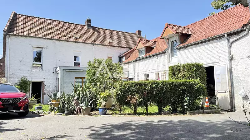 L'agence immobilière ACQUERIM Carvin, vend Ancienne Ferme rénovée de 200m² hab, proche du centre ville bâtie sur environ 705m² de terrain, avec grande cour intérieure comprenant 2 habitations et nombreux hangars ou garages.
