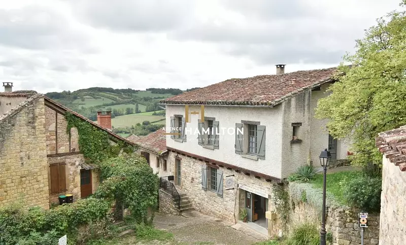 CORDES-SUR-CIEL - Cette maison, entièrement rénovée, s'impose par son authenticité et son harmonie au sein de ce village classé, l'un des Plus Beaux Villages de France. L'ensemble, fidèle à l'esprit de la cité, se présente sous la forme de deux logements indépendants, chacun disposant d'une entrée privative sur rue et d'un jardin à l'abri des regards. Le rez-de-jardin de la maison principale se compose d'un grand hall d'entrée, d'un séjour spacieux d'environ 30 m² agrémenté d'un poêle moderne à double combustion, ainsi que d'une grande cuisine lumineuse, récemment aménagée et équipée, offrant un accès direct au jardin. À l'étage, deux chambres spacieuses, un bureau et une salle d'eau complètent cet espace de vie, chaque détail ayant été pensé pour le confort quotidien. L'appartement T2 indépendant bénéficie de son propre séjour, d'une cuisine équipée, d'une chambre et d'une salle d'eau. Il est actuellement relié au logement principal par une porte de séparation au premier étage, mais peut tout à fait fonctionner de manière autonome. Son jardin, véritable petit oasis de tranquillité, met à disposition un puits pour l'arrosage, ajoutant une dimension d'autonomie à cet espace. Ce logement séduira par son confort, son agencement et son potentiel : extension naturelle de l'habitation principale, espace d'accueil pour la famille, ou encore source de revenu complémentaire grâce à la location, en courte ou longue durée. L'ancien double garage, transformé dès 2018, propose aujourd'hui un espace atelier-boutique d'une grande polyvalence : à conserver pour une activité artisanale ou commerciale, à reconvertir en logement supplémentaire ou en lieu de restauration avec terrasse conviviale. Partout dans la maison, le soin porté au confort et à la performance énergétique se manifeste dans les moindres détails : toutes les huisseries sont équipées de double vitrage, les murs bénéficient d'un doublage de briquettes et de laine de verre, et les combles d'une isolation par ouate de cellulose soufflée. Entre authenticité, performance énergétique et potentiel d'investissement, cette propriété s'adresse à des acquéreurs exigeants, désireux de vivre au cœur d'un village mythique du Sud-Ouest tout en profitant de solutions d'isolation modernes et d'une organisation fonctionnelle parfaitement pensée. Nous parlons français, anglais et néerlandais. Frederic BASTEMEIJER et Jean-Philippe GRENIER Agence Hamilton Cordes-sur-Ciel, un des Plus Beaux Villages de France