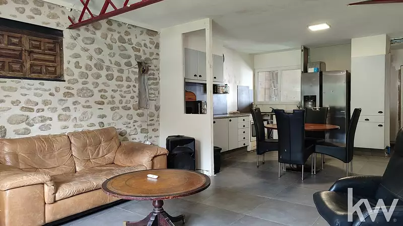 Découvrez ce spacieux hangar de 100 m² en rez-de-chaussée, idéal pour stockage, atelier ou autres projets professionnels, complété par appartement à l’étage. Ce dernier offre deux chambres confortables et une grande pièce de vie ouverte, parfaite pour accueillir famille et amis.