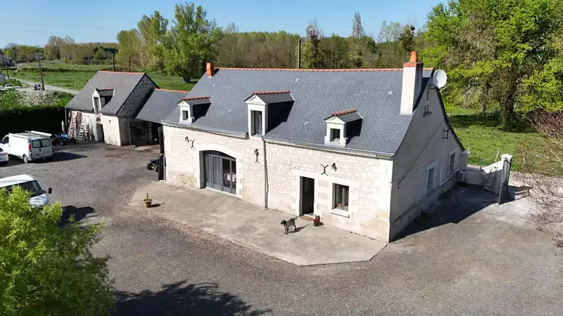 - une Maison de 200 m2, habitable de suite, proche de Chinon et de Saint Nicolas de Bourgueil. Elle se compose au rez de chaussée d'une salle à manger, un salon avec cheminée, une cuisine aménagée, une chambre avec coin toilette, une buanderie. A l'étage, le vaste pallier donne sur 4 chambres, une salle d'eau ,un débarras,.