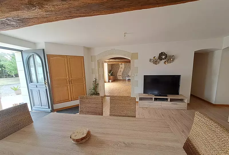 Face à la terrasse le terrain de cette propriété est clos, constructible et piscinable, relié au tout à l'égout et à la fibre.