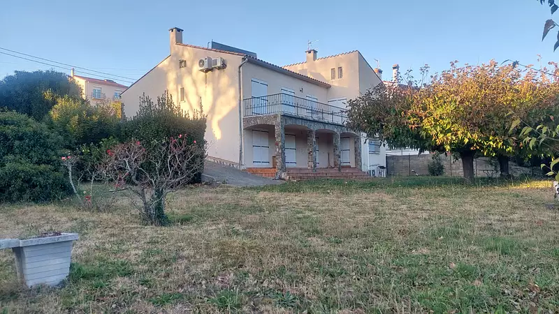 Villa classique type F8 d'une superficie habitable de 200 m2 avec l'habitation principale au rez de chaussée, possibilité PMR avec entrée, salon séjour, cheminée, salle d'eau, wc, 3 chambres et grande cuisine. Garage et buanderie ainsi qu'une belle terrasse plein sud avec vue directement sur les albèrres.