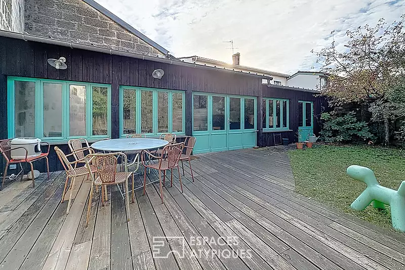 Cette propriété en mono-propriété réunit avec beaucoup d'harmonie trois espaces de vie distincts : une maison principale en pierre au charme préservé, un appartement T3 récemment rénové et un studio indépendant. Situé dans un environnement résidentiel pratique, l'ensemble bénéficie d'un accès immédiat aux commerces, aux transports, aux écoles et au marché dominical du Bouscat, apprécié pour sa convivialité. La maison principale, développant 155 m², offre tout le caractère d'une échoppe en pierre avec ses prestations anciennes soigneusement conservées. L'entrée ouvre sur une belle pièce de vie où se mêlent séjour lumineux, salle à manger et cuisine familiale prolongée par un cellier. A l'étage, un palier distribue quatre chambres, dont une suite parentale avec dressing et salle d'eau, ainsi qu'une salle d'eau indépendante et un WC. A l'arrière, un jardin intimiste et sans vis-à-vis constitue un véritable refuge en pleine ville. Un garage et une cave viennent compléter cet espace. Mitoyen à la maison principale, l'appartement T3 de 53 m² a fait l'objet d'une rénovation contemporaine. Il propose un agréable séjour traversant avec cuisine ouverte, deux chambres, une salle d'eau et un WC indépendant. Son jardinet privatif offre un extérieur intime, qui permet de vivre cet appartement comme une petite maison, un atout rare dans le secteur. Enfin, au-dessus du garage, un studio indépendant de 24 m² propose un espace optimisé comprenant une pièce de vie avec cuisine ouverte, une salle d'eau et une mezzanine. Un lieu idéal pour accueillir un proche, un étudiant, ou envisager un revenu locatif complémentaire. L'ensemble compose une propriété polyvalente, mêlant charme ancien, touches contemporaines et extérieurs privatifs, dans un cadre de vie pratique et convivial au Bouscat. CLASSE ÉNERGIE : D/ CLASSE CLIMAT : B. Montant moyen estimé des dépenses annuelles d'énergie pour un usage standard, établi à partir des prix de l'énergie de l'année 2023 : entre 2340 et 3230 euros. Alison Gaudicheau (EI) Agent Commercial : 06 84 57 11 59 / Numéro RSAC : 832 220 636 Bordeaux. Alison Gaudicheau (EI) Agent Commercial - Numéro RSAC : 832 220 636 - Bordeaux.