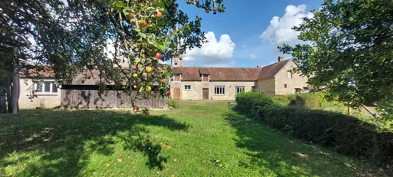 Le MELE SUR SARTHE, en village typique, maison en pierres aux beaux volumes sur 7300 m² de jardin, prairie et vergers, comprenant : une maison d'habitation de beaux volumes : entrée, séjour et salon, cuisine avec cuisinière bois, deux chambres lumineuses, sdb, wc, chaufferie. Grenier sur le tout, tout à l'égout, chauffage central, huisseries récentes. A la suite : écurie, étable, garage voiture. A l'écart : un hangar, un bâtiment atelier et buanderie, divers abris. Puits. Bel ensemble, sans nuisances. AGENCE BENOIST ORPI TEL 02 33 25 41 23