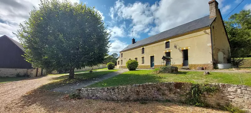 En sortie de village, bel ensemble de caractère percheron parfaitement rénové et lumineux comprenant : une entrée /vestiaire, un séjour et salon de 42 m² avec insert, une cuisine meublée et aménagée par extension avec baie vitrée sur terrasse, un salon avec cheminée d'époque, local buanderie, WC, rangement. A l'étage : un palier bureau, trois chambres, WC, une salle de bains. Autre chambre parentale (salle de bains et WC, dressing et penderie). Chauffage pompe à chaleur. Huisseries aluminiums. Tout à l'égout. Deux dépendances en harmonie à usage de garages voitures et remises. L'ensemble au milieu d'un jardin arboré de 3291 m², avec puits et portail motorisé. Belle opportunité à saisir. AGENCE BENOIST ORPI 02 33 25 41 23