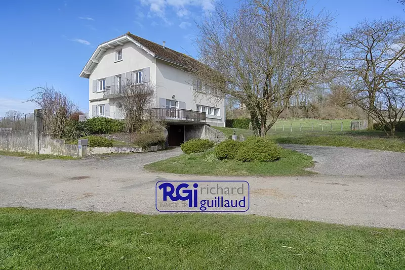 A 10mn de Les Abrets (38490), avec une vue sur les montagnes et la campagne environnante, au calme et sans vis à vis, tout en étant proches des commodités, gares et axes autoroutiers. A découvrir cette grande maison familiale de 200 m² habitables sur sous-sol complet. Au RDC : un hall d'entrée, une grande cuisine (32m²), un vaste séjour-salle à manger très lumineux de 33m², un WC séparé, un cellier, une buanderie et son accès au sous-sol. À l'étage : 5 grandes chambres avec placard (entre 13 et16m²), une salle de bain, une grande salle d'eau (10m²), un toilette séparé et un accès aux combles qui offre des possibilités d’aménagement d'environ 80m2 (dalle béton). Au sous-sol, un grand garage, un atelier, une cave, un espace rangement et un espace chaufferie. Chauffage central FUEL. Les huisseries sont en PVC double vitrage. A l'extérieur : une terrasse exposée SUD Le tout sur un beau terrain d'environ 1200m2, entouré de champs. Le charme et le calme de la campagne Assainissement individuel neuf aux normes. Quelques travaux de rafraichissement à prévoir. Autoroute A43 à 5 mn et gare SNCF à 10 mn. Date de réalisation du diagnostic : 18/07/2023 Les honoraires sont à la charge du vendeur Montant estimé des dépenses annuelles d'énergie pour un usage standard : entre 2 970 € et 4 080 € par an. Prix moyens des énergies indexés sur l'année 2023 (abonnements compris)