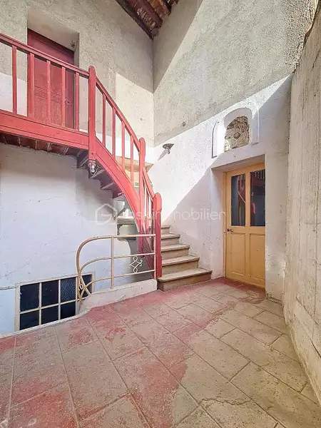 Un patio à l'étage dessert les diverses parties vers les autres pièces de vie, chambres, cuisine, toilettes, et la possibilité de créer un passage vers l'ancienne remise et créer sa grande terrasse ou son extérieur.